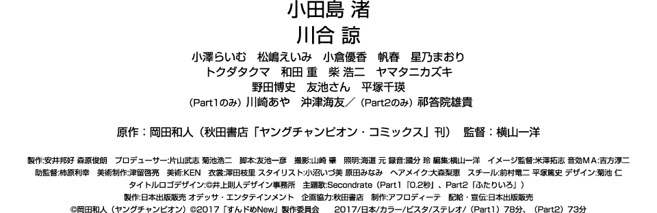 スタッフ 原作:岡田和人(おかだ かずと) 発表する作品が次々と映像化されるヒットメーカー。現在ヤングチャンピオンにて「ぱンすと。」が連載中で2017年4月20日に1巻目のコミックが発売。 主な作品: 「教科書にないッ!」(全18巻) 「ほっぷすてっぷじゃんぷッ」(全9巻) 「すんドめ」(全8巻) 「いびつ」(全7巻) 「いっツー」(全7巻) ・・・全て秋田書店刊 監督:横山一洋(よこやま かずひろ) 高校卒業後、単独でアメリカへ留学。カルフォルニア州コロンビア・カレッジに入学。映画学科を専攻し卒業後にプロデューサーのオリバー・エバリー氏(『スターゲイト』『ユニバーサル・ソルジャー』)との共同プロジェクトに参加する。その後、日本で映画やドラマのディレクターをつとめる。 主な作品: 「ハイキック・エンジェルス」 「映画版 ふたりエッチ」 「クジラ 極道の食卓」「天まであがれ!!」